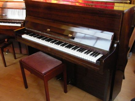 Recently restored German overstrung with one previous caring owner. A nice mellow tone and a pleasant plain dark cabinet.