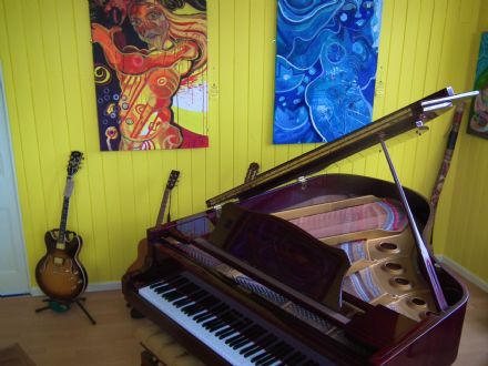 15 years old but with very little use by its one careful owner this piano is almost like new. It has been raised to concert pitch since purchase and has been adjusted to play beautifully. High lacquer finish in a warm mahogany shade - it is a very attractive and affordable grand piano