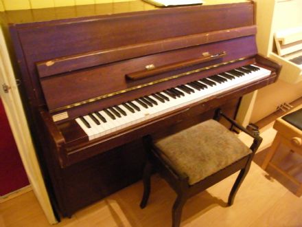 This is another piano with a history. It was the house / stage piano at the world famous Hebden Bridge Trades Club - who knows who has played this piano (I don't - but you could use your imagination). It is handsome;y battered and has been well used but maintains a very pleasant tone and is in reasonable internal condition. We plan to restore the cabinet - possibly by getting a local artist to paint it. Or if you fancy it as it is reflecting its history make us an offer